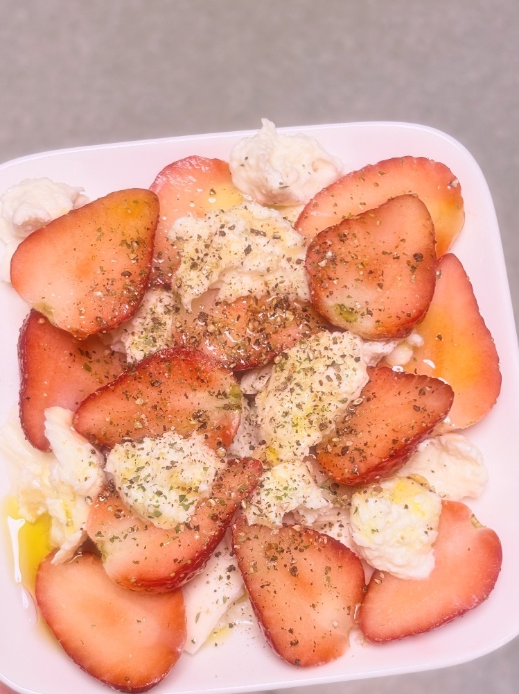 写真は最近料理にハマっているので昨日作ったいちごとモッツァレラのカプレーゼです♡