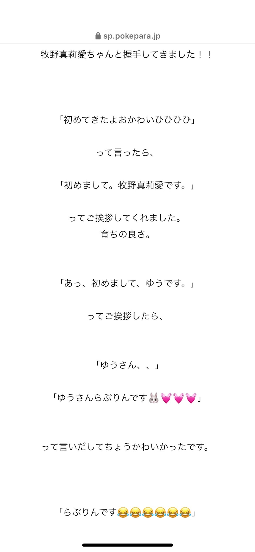 前撮ったチェキ載せたかなあって昔のブログさかのぼったら2019年2月に握手したときのブログがありました
