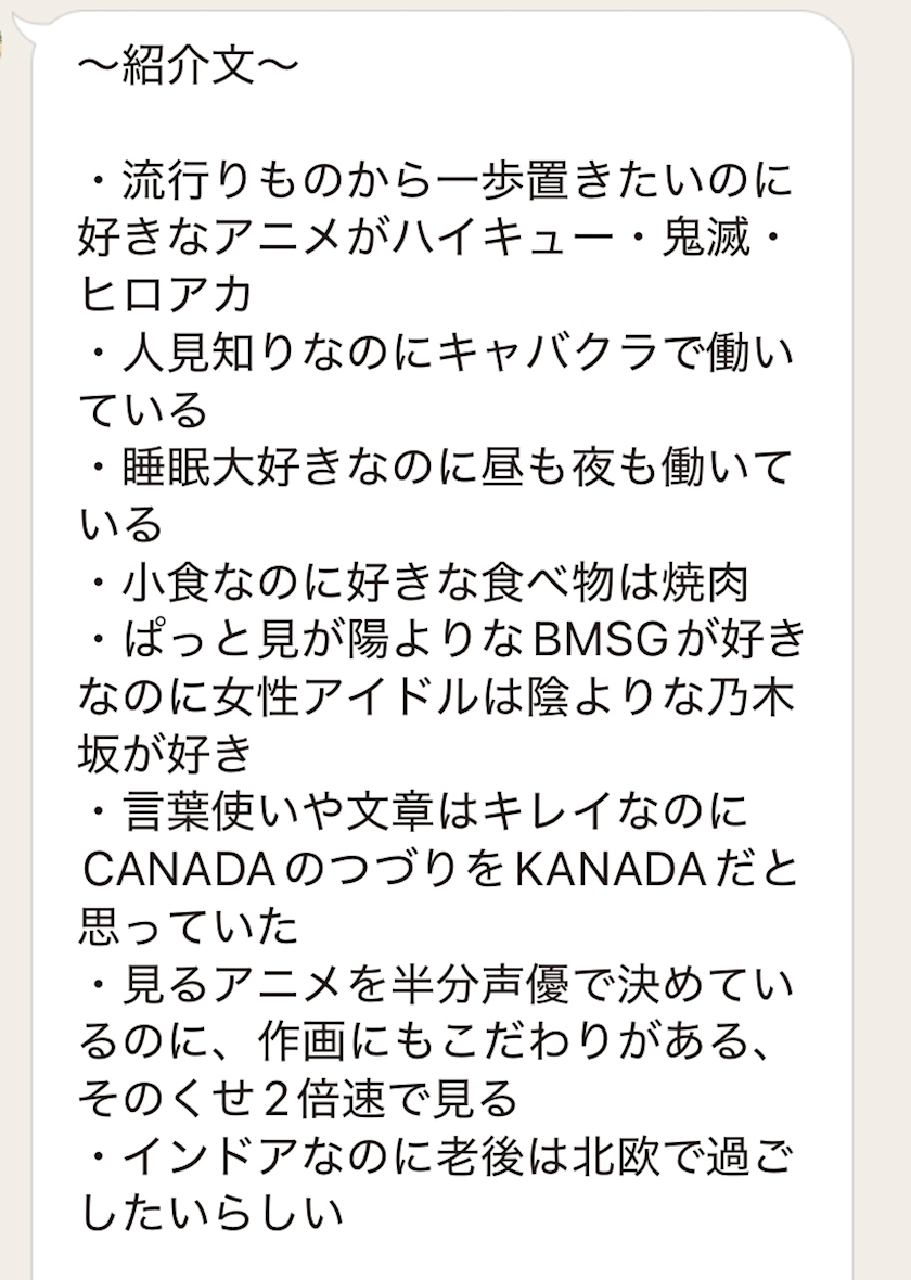 先日TOとmixiの紹介文の話になって、純菜の紹介文を書いてもらったの