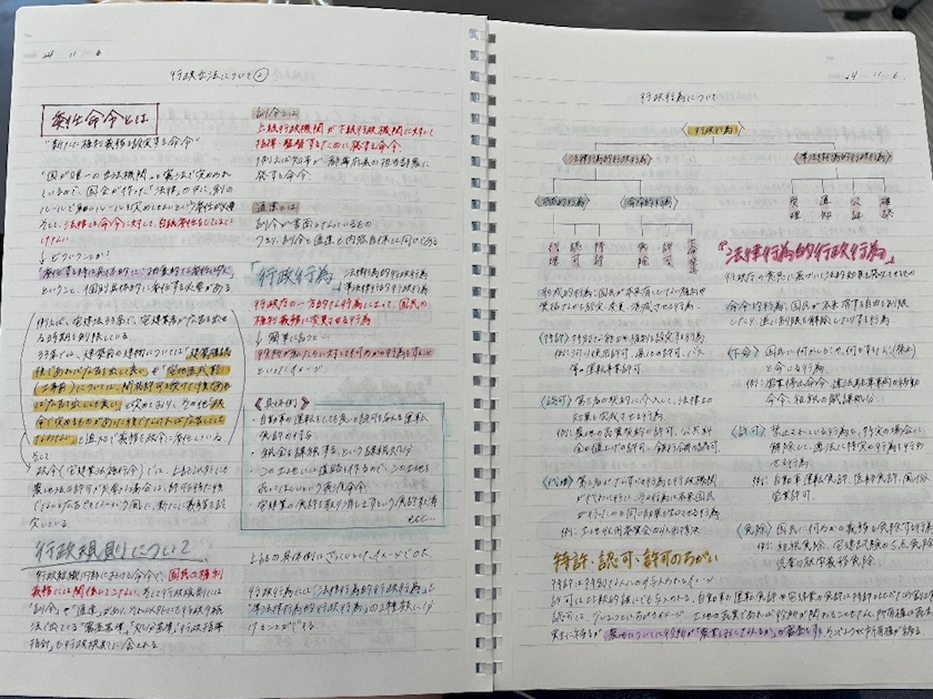 お家をちょこちょこ整理してたら、行政書士の勉強してるノートを見つけました
