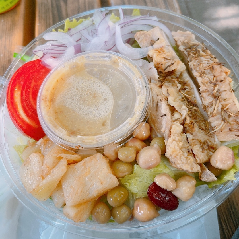 外でパワーサラダ食べたよ💪