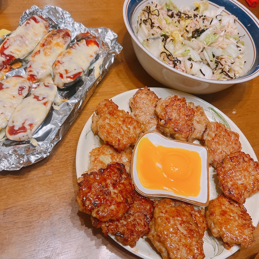 ナスピザと、月見つくね