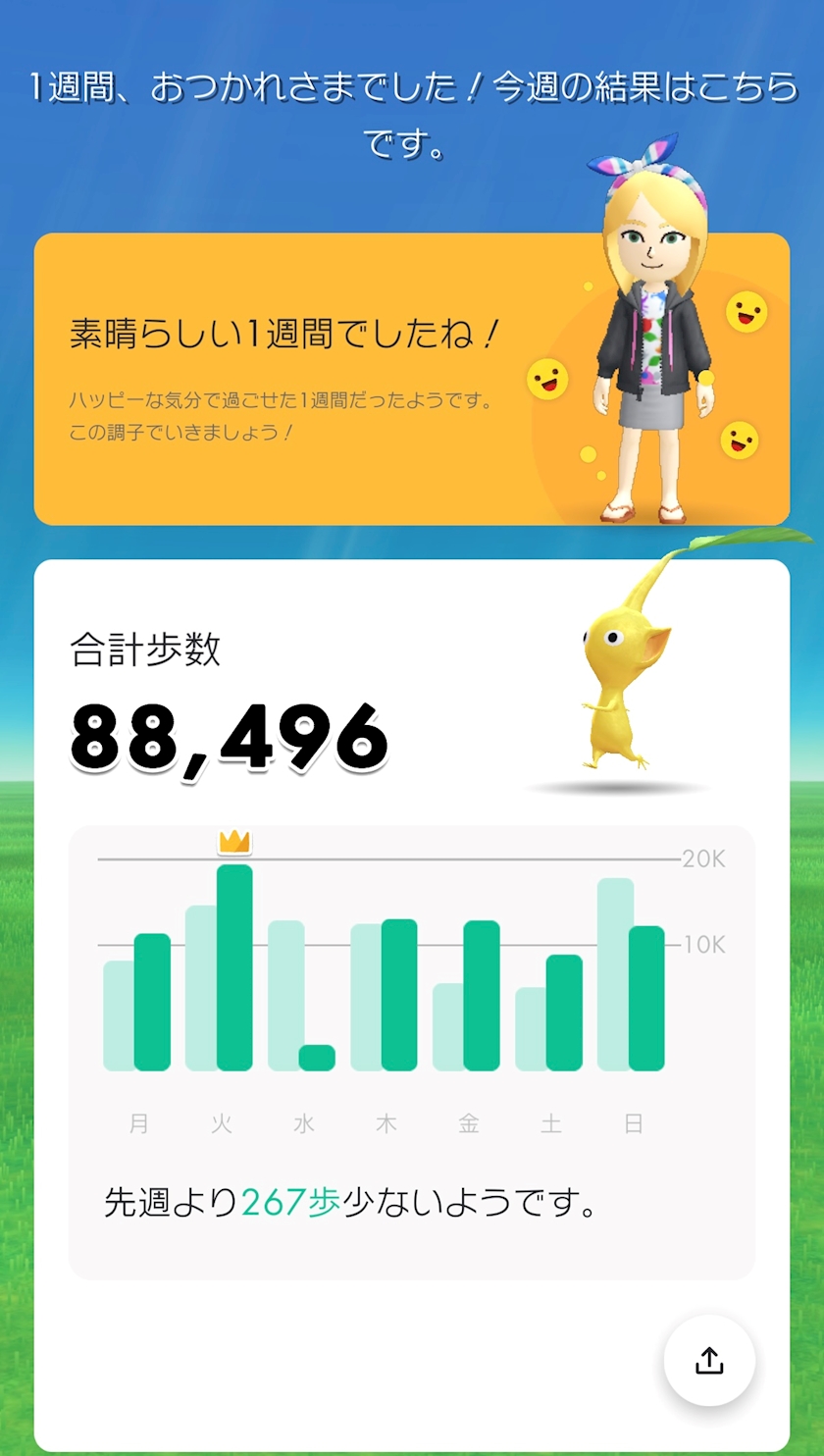 先週より267歩少ないらしい。
