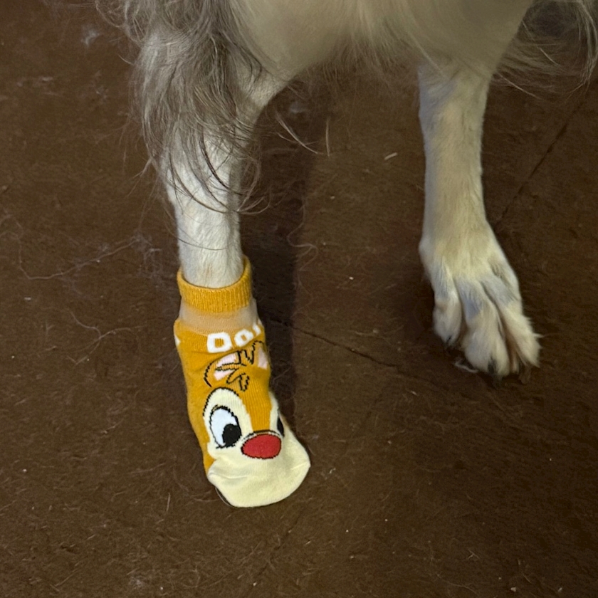お薬塗って靴下履いてるけど、