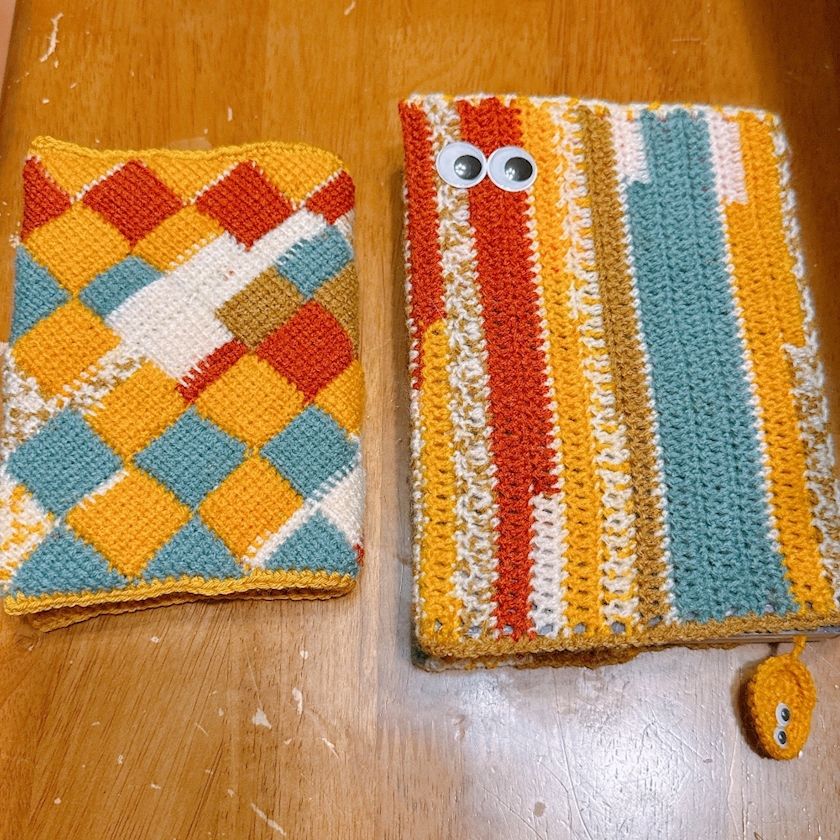 👀ブックカバーと同じ毛糸で編んでるんですけど、
