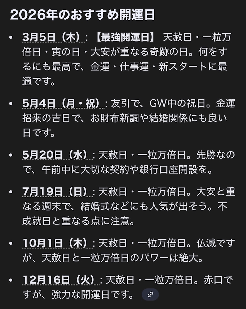 今年の最強開運日は3/5らしいです。