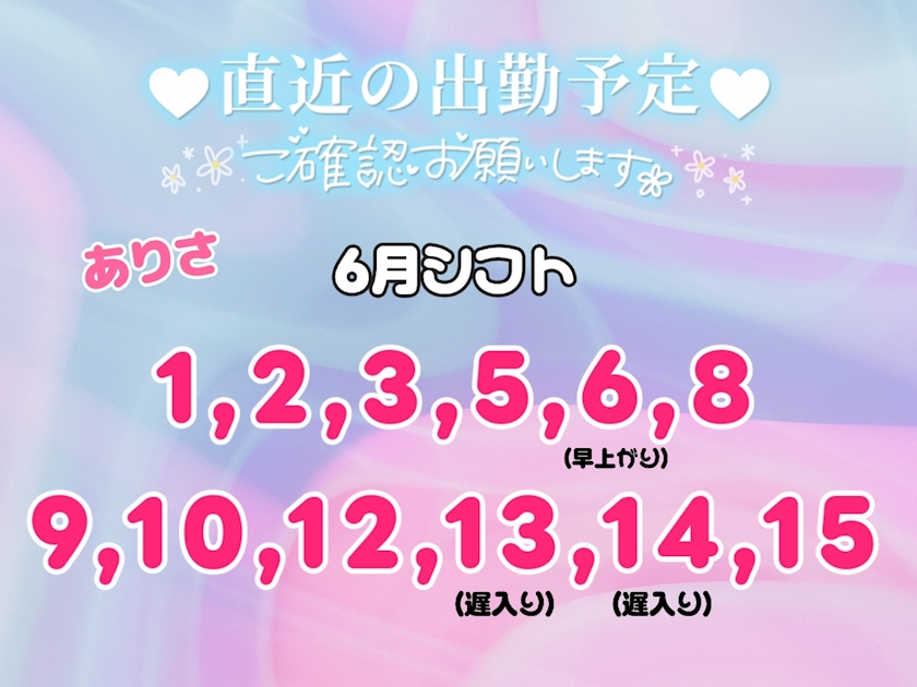 6月前半のシフトです!
