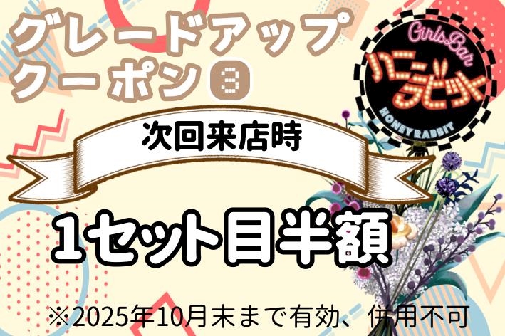 3回ご来店頂くと、4回目は1セット目半額です。