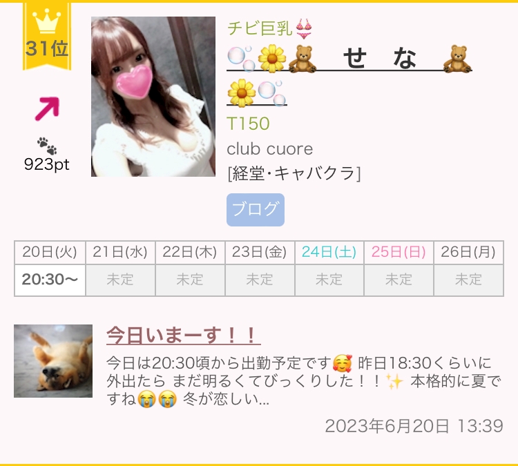 31位!!!!!✨ - 🫧🌼🧸 せ な 🧸🌼🫧 - club cuore・クオーレ - 経堂のキャバクラ