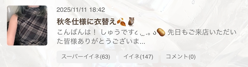 コメント返す日ʕʘ‿ʘʔ✍️🗒️ - しゅう - CLUB XRONUS・クロノス - 祖師ヶ谷大蔵のキャバクラ