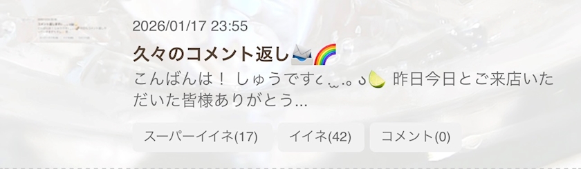 コメント返します🐒📨❣️ - しゅう - CLUB XRONUS・クロノス - 祖師ヶ谷大蔵のキャバクラ