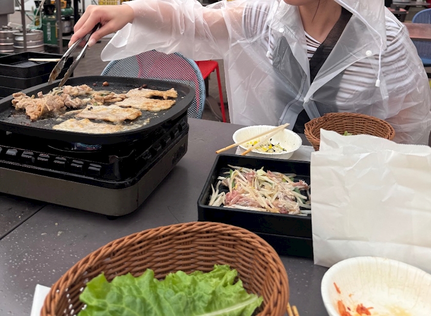 レインコート着ながらお肉焼くの、流石に初体験すぎる