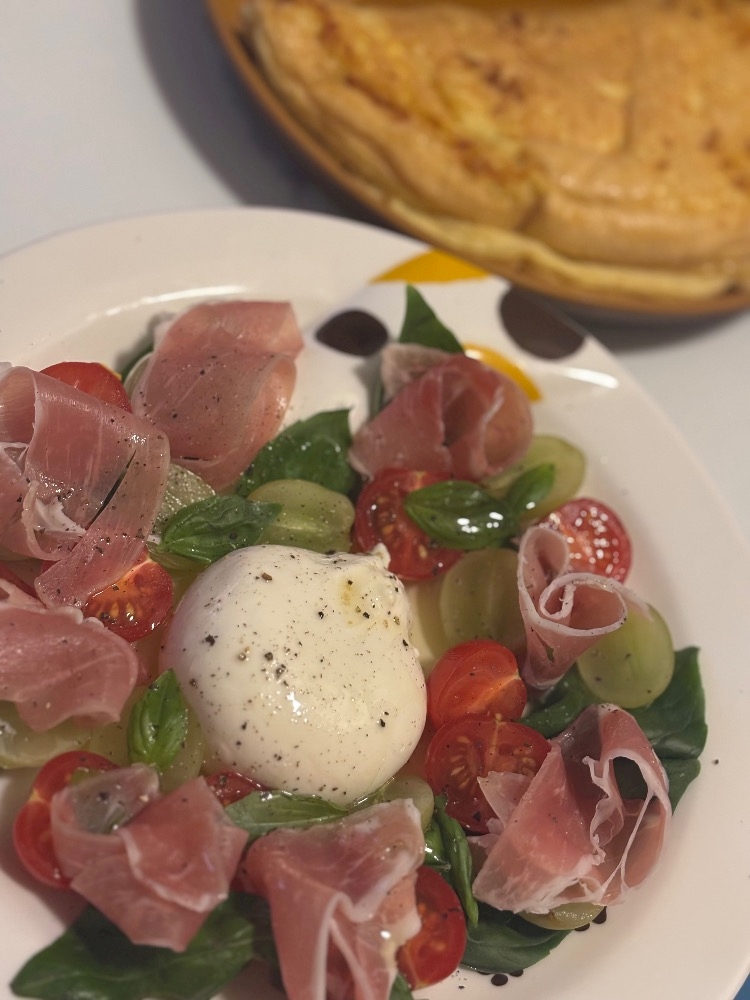 この間は久しぶりのスフレオムレツにブッラータのサラダ作っちゃいました🥗