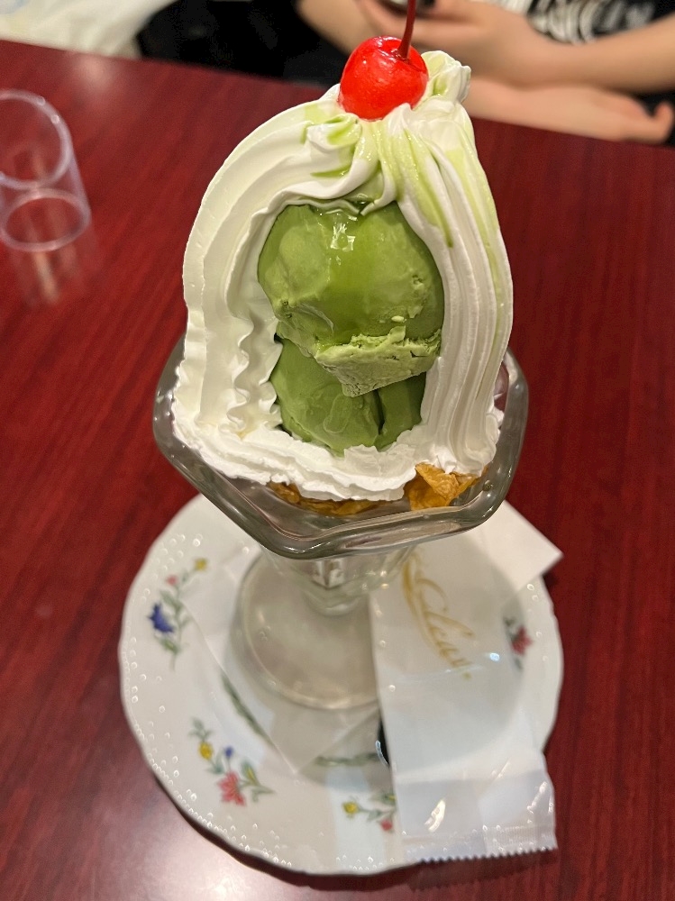 抹茶パフェたべた〜