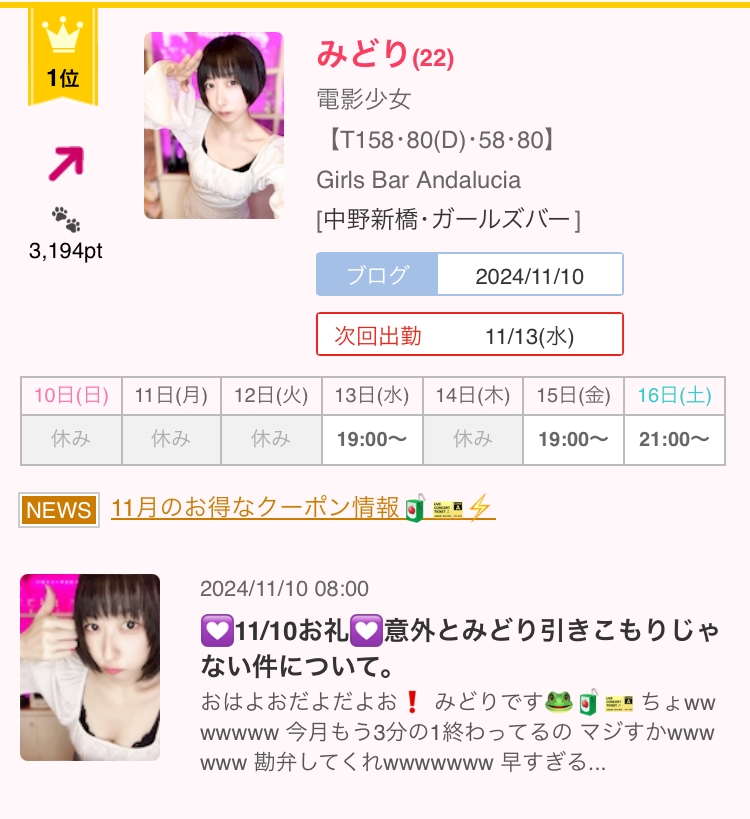 ✨️ガールズバーランキング✨️