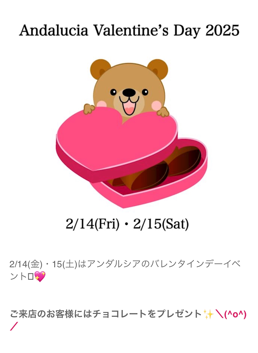 2/14 ・ 15アンダルシアへ来るとチョコレートが貰えるみたい🍫🧸