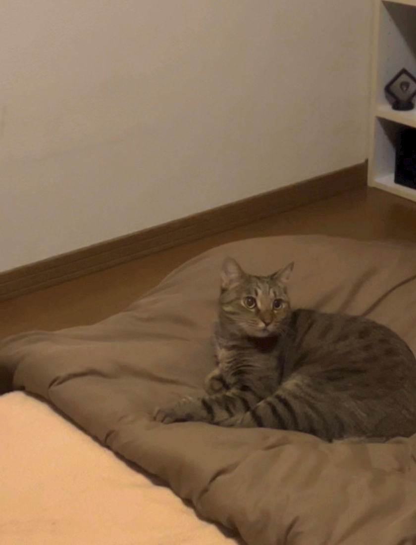 人間の布団をドヤ顔で陣取るレオくん