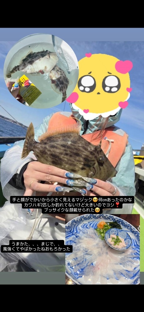2匹しかカワハギは釣れなかったけど、船の中で1.2番目に大きいサイズ釣れた✌️🐟