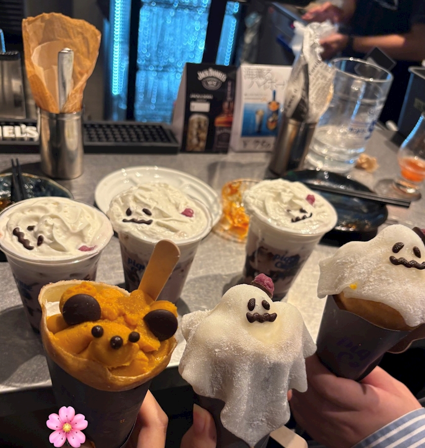 バーの店長さんが買ってきてくれて、お酒とおつまみとクレープっていう不思議な空間だった.ᐟ.ᐟ