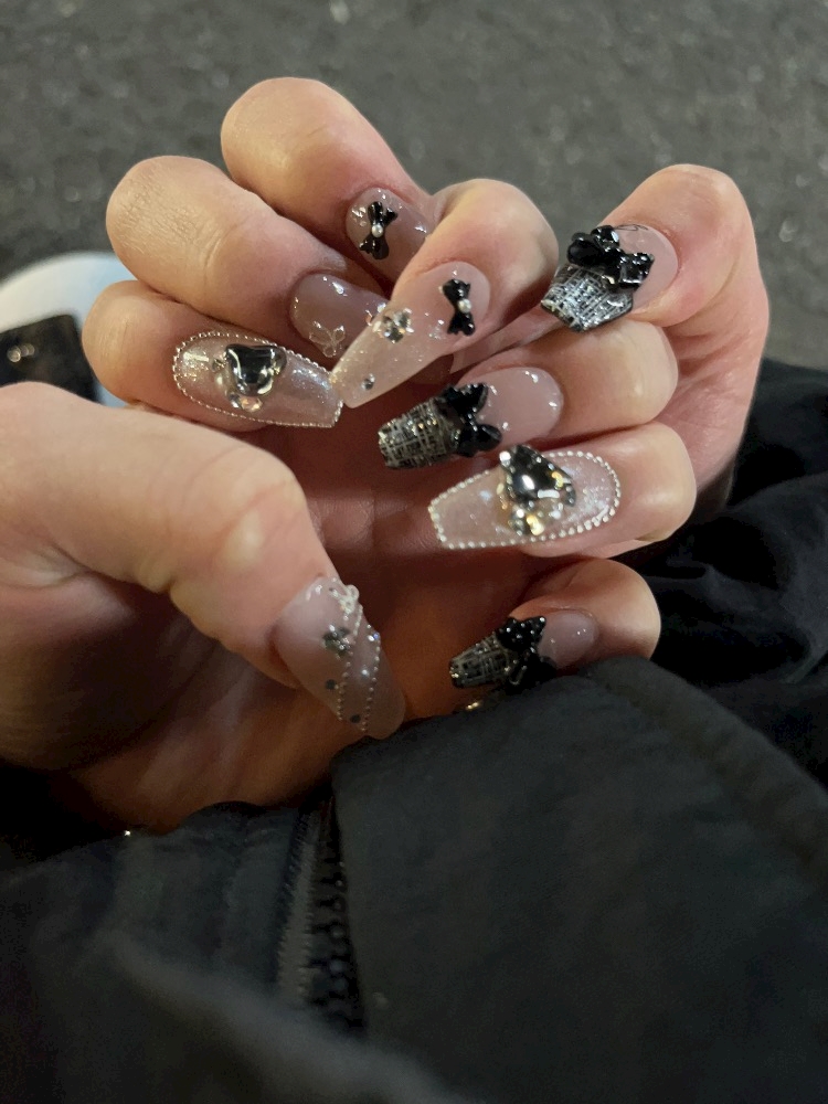久々にネイルしました🎀🖤 ̖́-