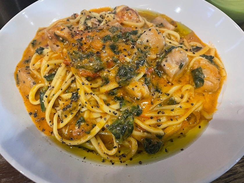 はじめて鶏肉パスタだったけど