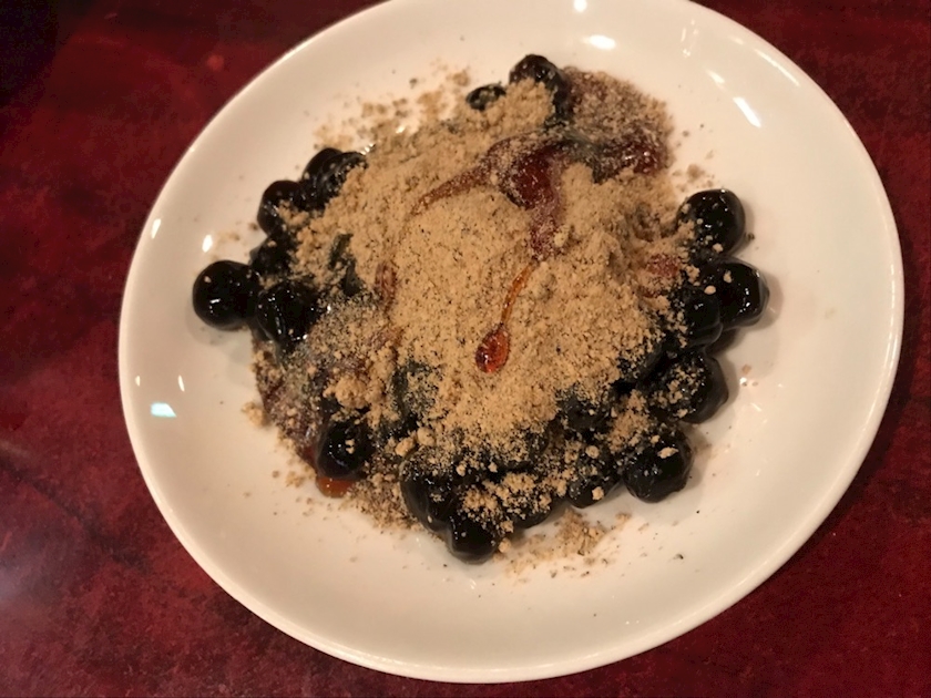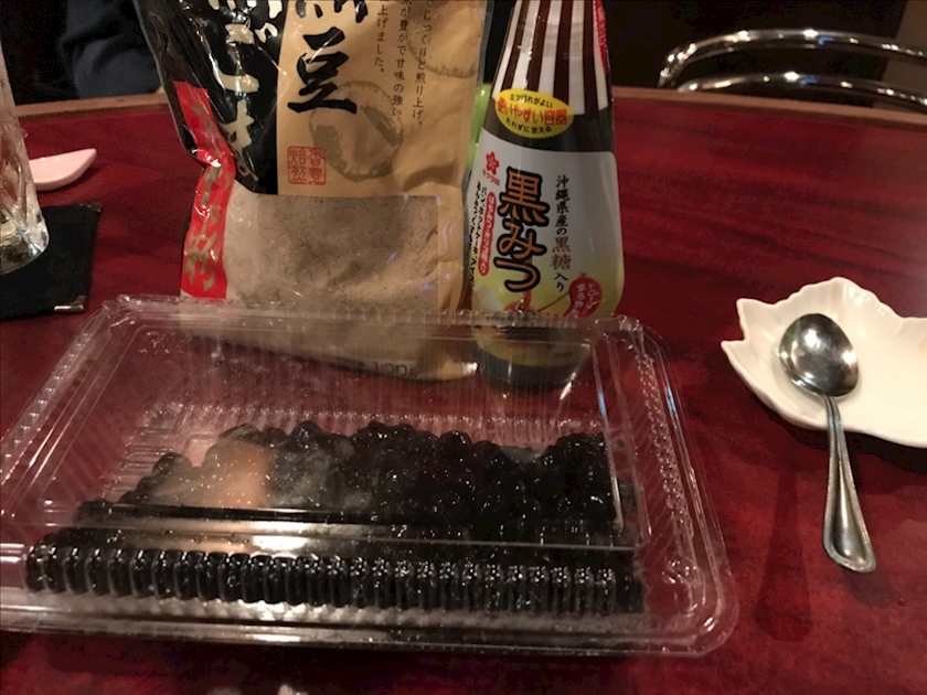 黒糖タピオカにきな粉と黒蜜をかけたら