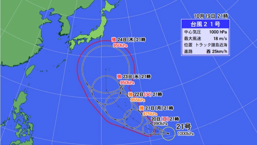 台風21号発生の告知。。。Σ(-᷅_-᷄๑)