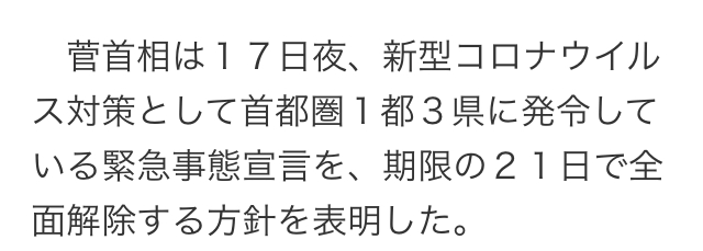 緊急事態宣言は解除の方向になりそうですが