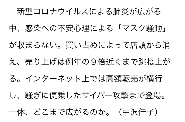 一年前はマスク騒動でしたね😷