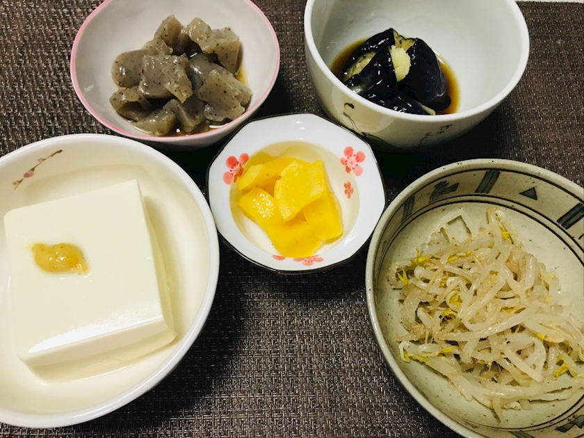 【冷や奴】に【もやしのナムル】