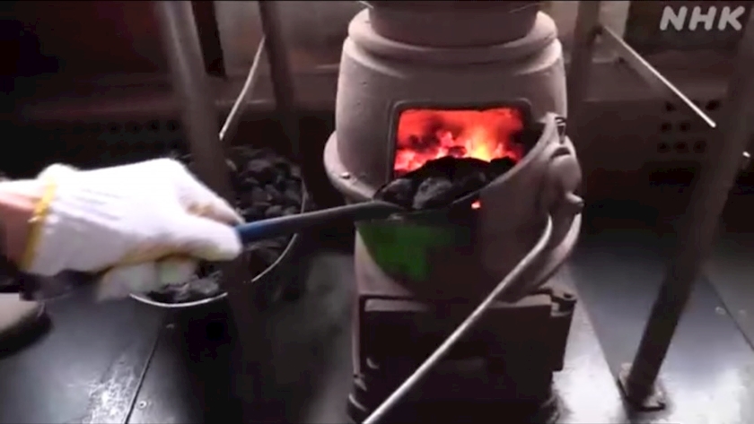 石炭を利用するストーブの上では