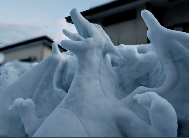 屋根から落ちて来た雪を使って