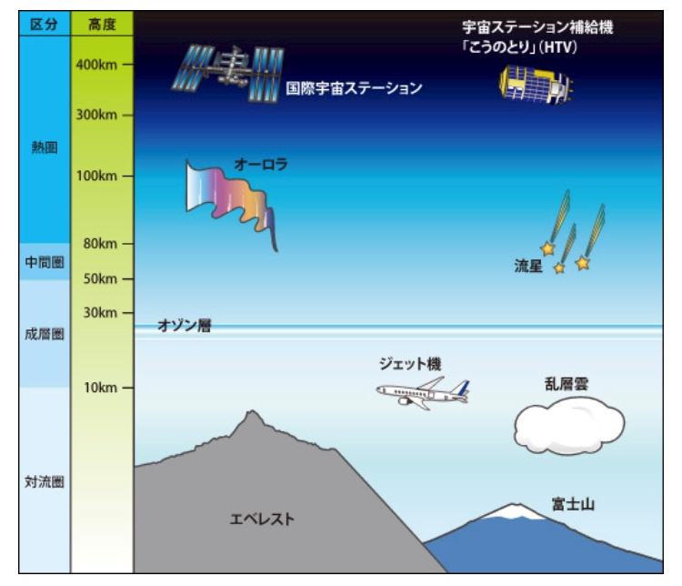 地上30〜100Km辺りを