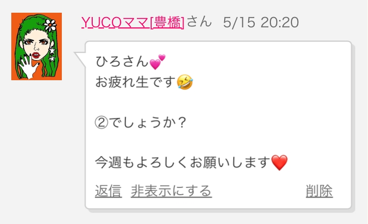 今夜は[ゆかちゃん]がラス...