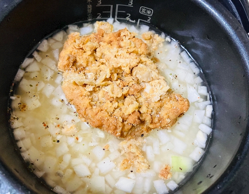 ニンニク、コンソメを入れて炊いた