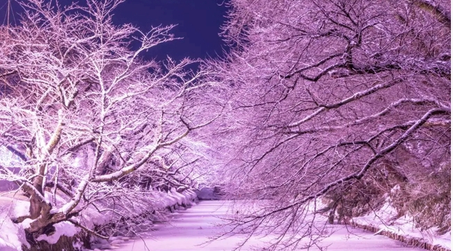 桜の木々に降り積もった雪や