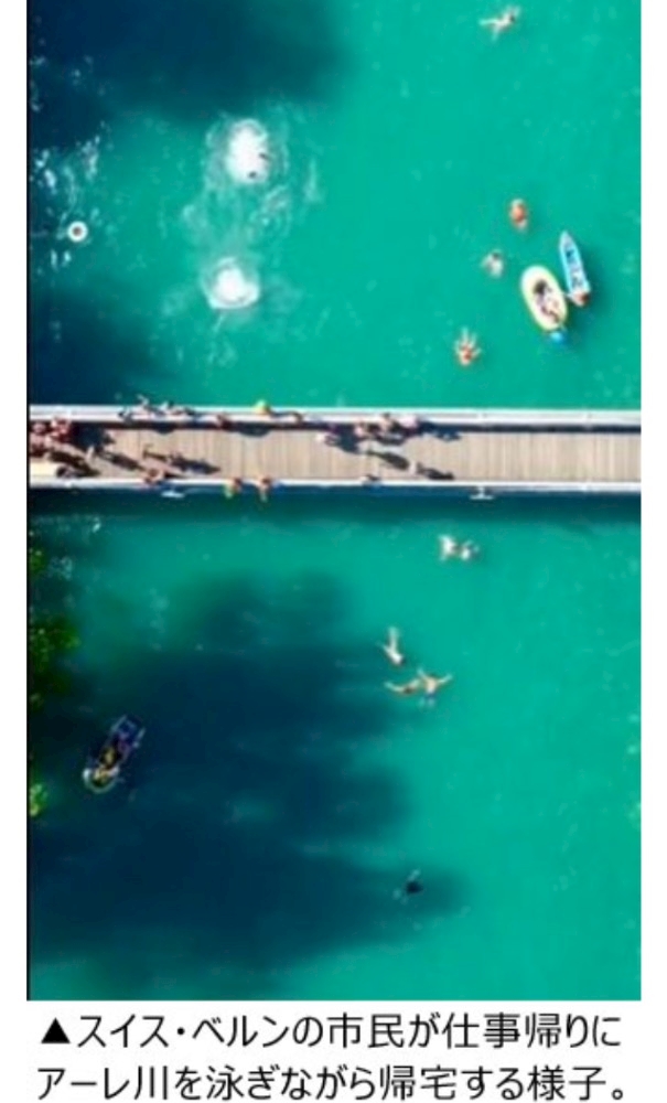 川を泳いで帰宅する人が