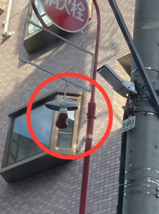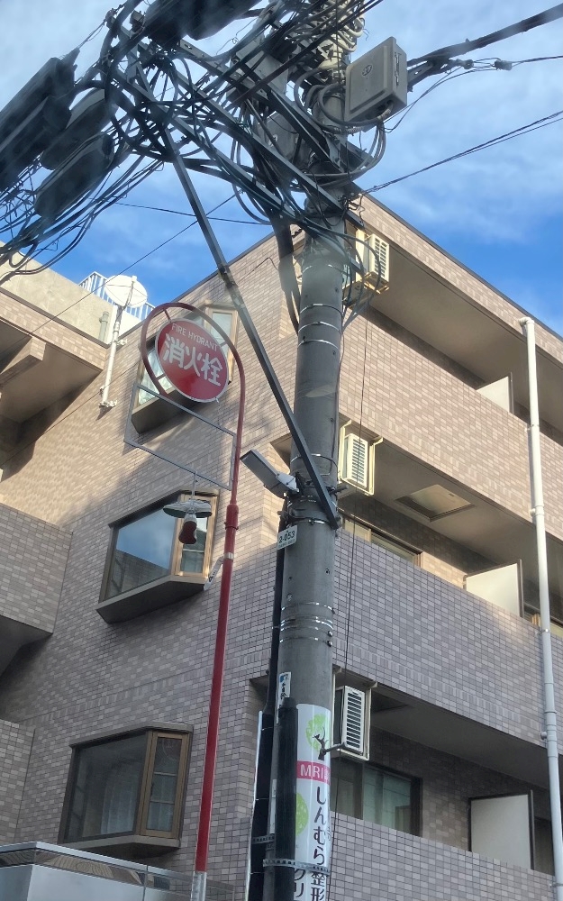 消火栓の標識の下に