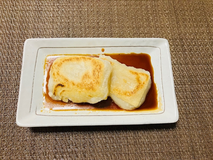 フライパンで揚げ焼きしたお餅を