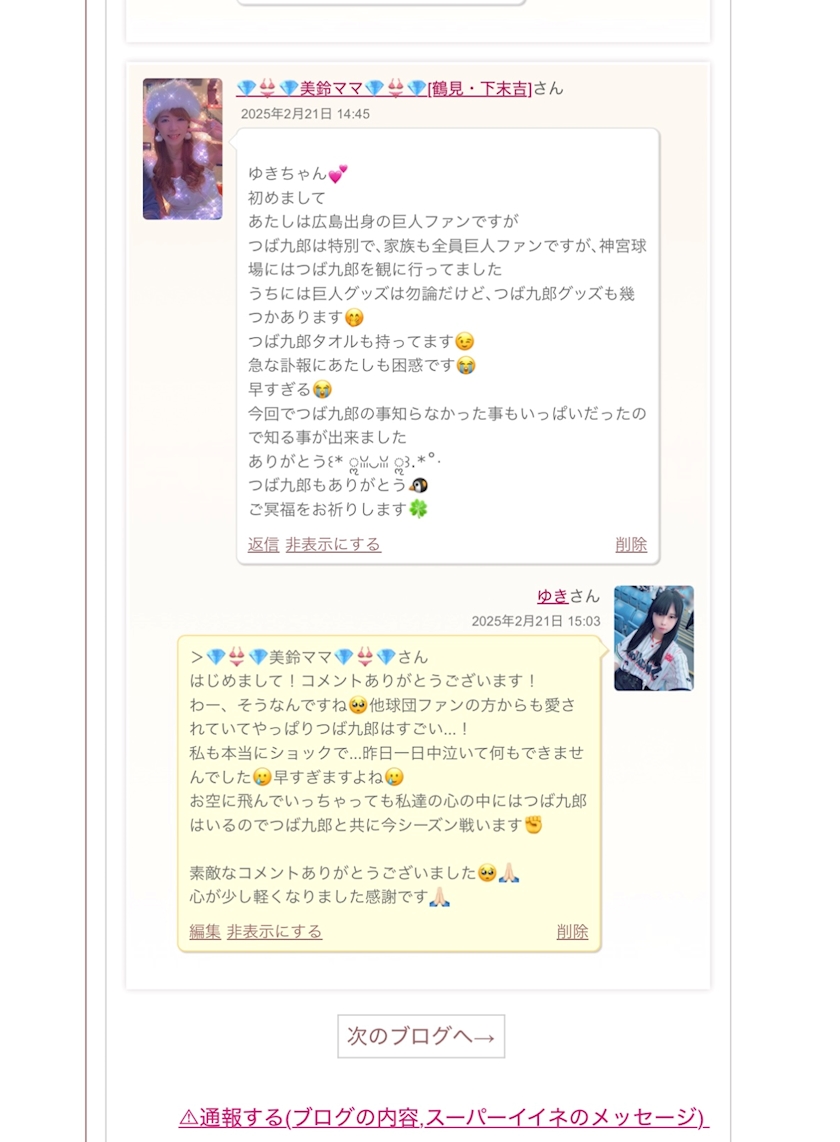 つば九郎へのコメントも少しあって。