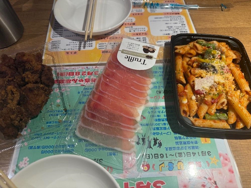 唐揚げもペンネも美味しかったし