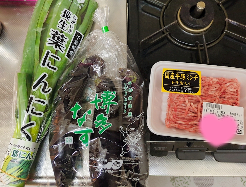 珍しい葉にんにくも見つけたので麻婆茄子ですね。