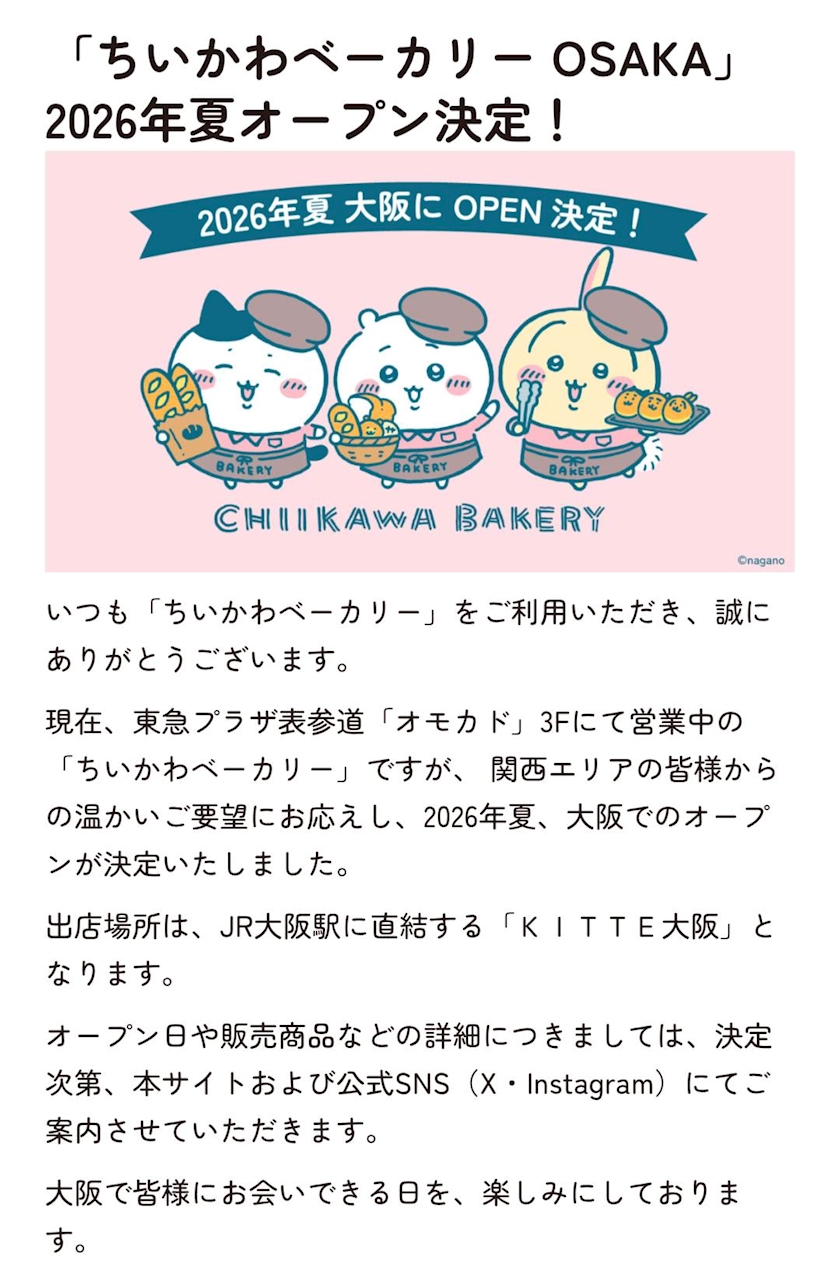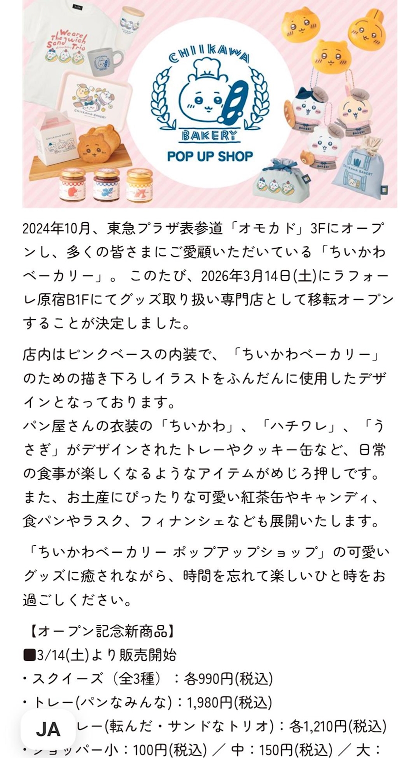 ちいかわベーカリーオープンが決定🎊