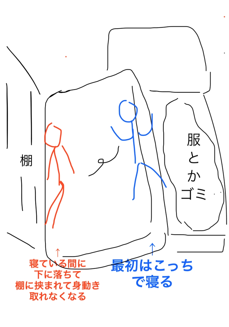 今やマットレスは8割方ずり落ちていて