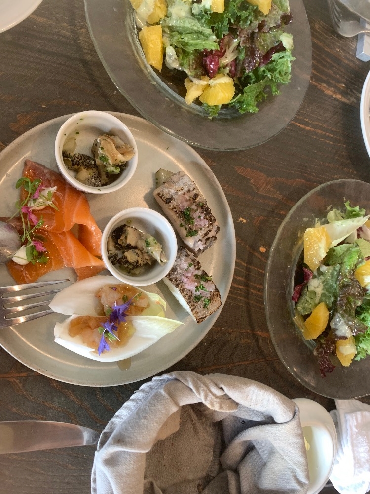 魚介の前菜と、季節のフルーツサラダ🥗