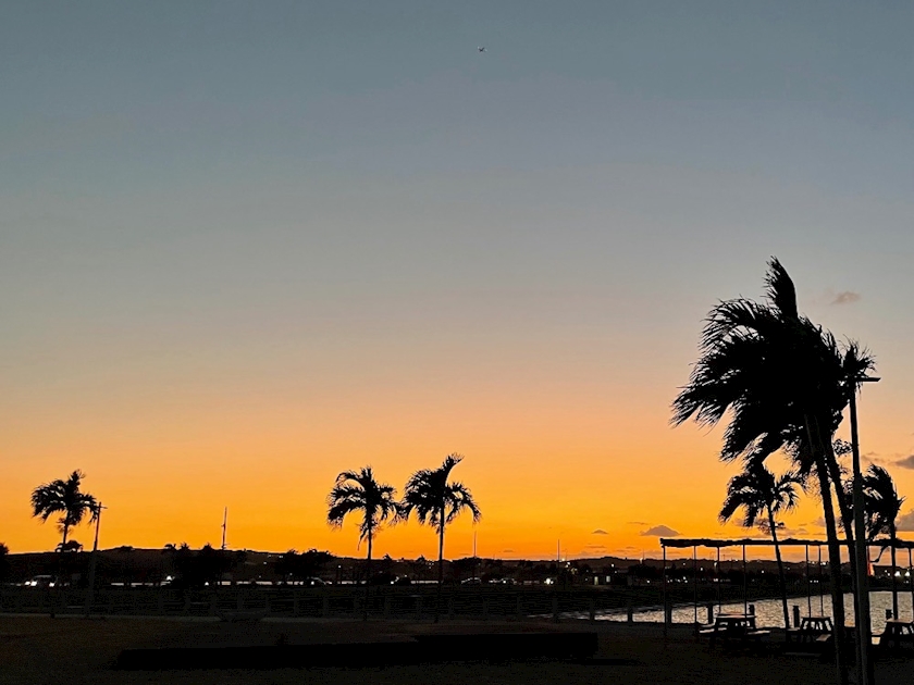 このヤシの木と夕日と影のコントラストが綺麗すぎるよって話😌