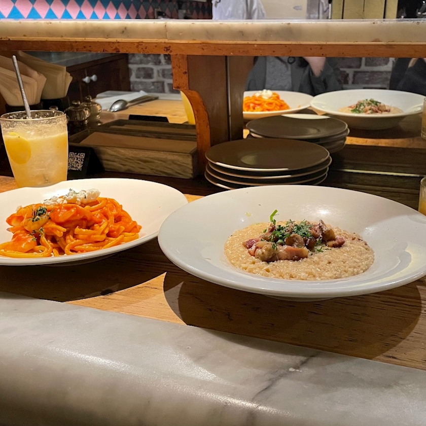 学校のお友達と飲んでパスタとリゾットたべて美味しくって!!