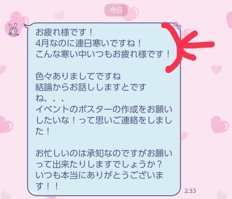 お願いのLINEと同時に