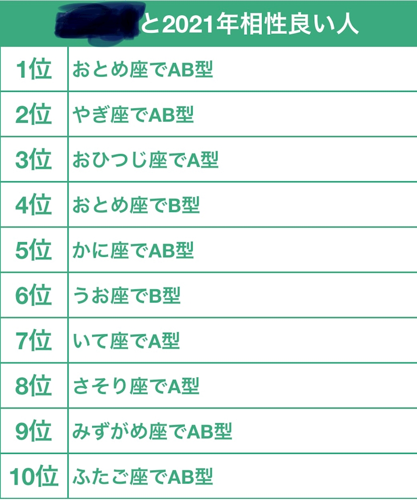 最近流行ってる相性のいい人(?)ランキング