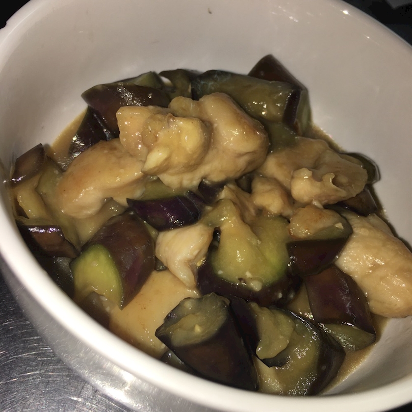 これは茄子とむね肉のガリマヨ炒め